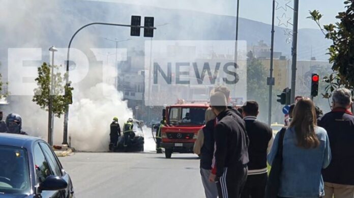 Σώος ο οδηγός του οχήματος – Στο σημείο οι πυροσβεστικές δυνάμεις που κατέσβησαν την πυρκαγιά