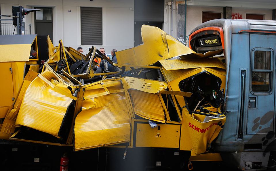 Η μηχανή λείανσης συγκρούστηκε με συρμό, ο οποίος είχε τοποθετηθεί στην περιοχή της Αττικής, για να σταματήσει την πορεία της.