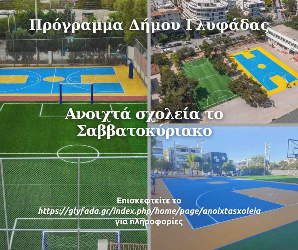 Με απόφαση του Δήμου Γλυφάδας, από το Σαββατοκύριακο 27-28 Απριλίου, ξεκίνησε η πιλοτική εφαρμογή του προγράμματος «Ανοιχτά σχολεία και Σαββατοκύριακα», με το 2ο και 3ο Δημοτικό Σχολείο Γλυφάδας να κάνουν την αρχή για φέτος, για τις εξής ώρες και δραστηριότητες: