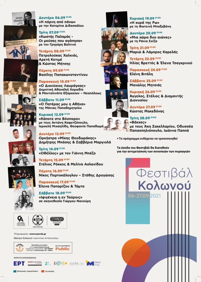 Τέλος, όπως διευκρινίζεται το πρόγραμμα του Φεστιβάλ Κολωνού ενδέχεται να τροποποιηθεί.