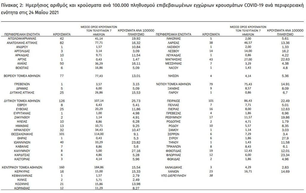 Το τελευταίο 24ωρο έγιναν 70.102 τεστ με ποσοστό θετικότητας 3,47%.