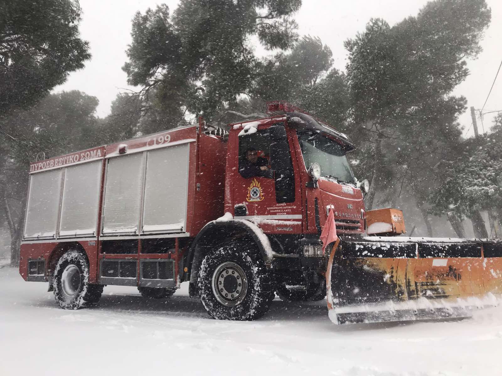 Επιχείρηση από την Πυροσβεστική στήθηκε νωρίς το πρωί της Δευτέρας στον Ασπρόπυργο για τον απεγκλωβισμό τεσσάρων ατόμων, το όχημα των οποίων ακινητοποιήθηκε λόγω χιονιού.