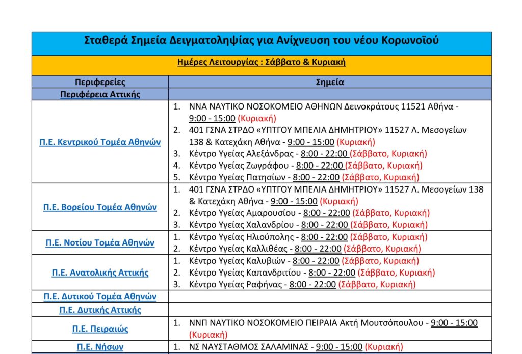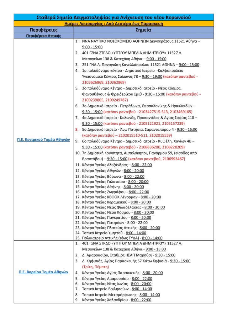 Δείτε αναλυτικά τα σταθερά σημεία rapid test στην Αττική