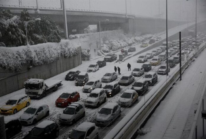 Παραμένουν κλειστά και επιχειρείται εκχιονισμός και απομάκρυνση εγκαταλελειμμένων οχημάτων στα τμήματα: