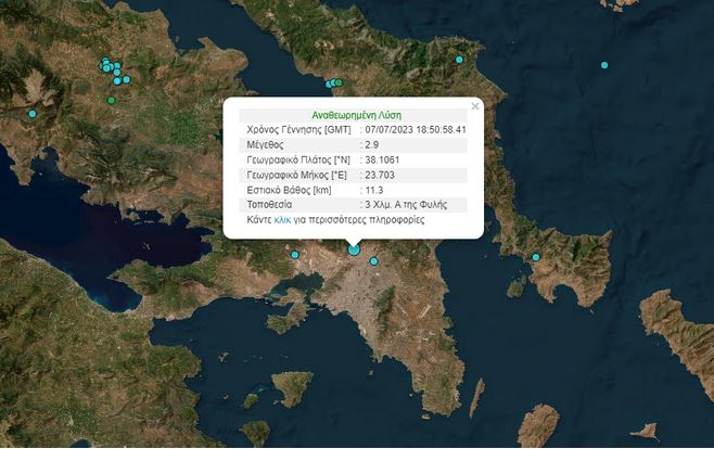 Η δόνηση είχε επίκεντρο 3 χιλιόμετρα ανατολικά της Φυλής και είχε εστιακό βάθος 11,3 χιλιόμετρα