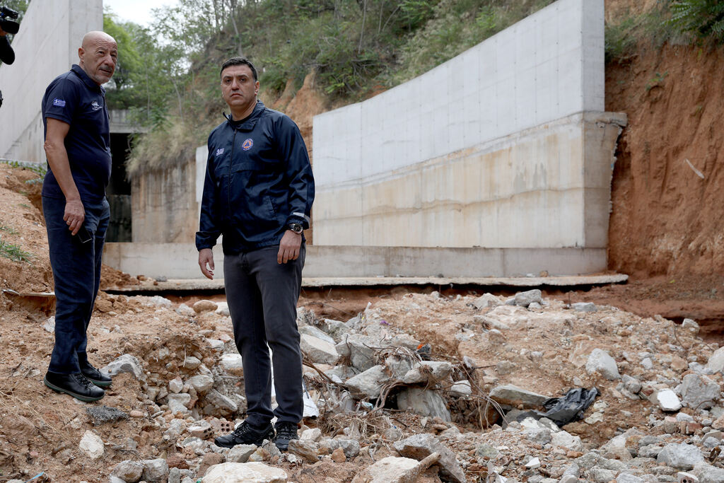 Αυτοψία κατά μήκος του Κηφισού πραγματοποίησε νωρίς το πρωί της Τετάρτης (11/10) ο υπουργός Κλιματικής Κρίσης και Πολιτικής Προστασίας, Βασίλης Κικίλιας, συνοδευόμενος από τον γενικό γραμματέα, Βασίλη Παπαγεωργίου, και μηχανικούς του υπουργείου.