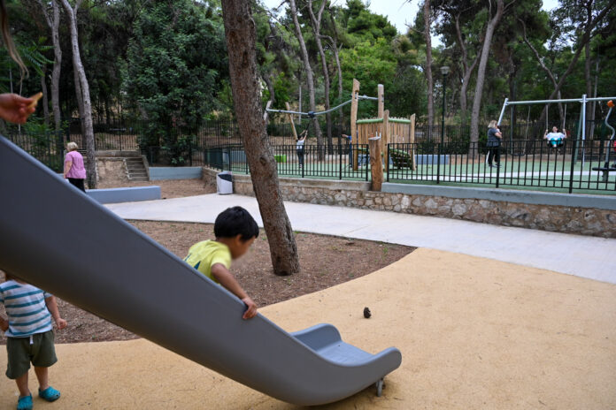 Δείτε εικόνες από τη σύγχρονη, ασφαλή και πλήρως εξοπλισμένη παιδική χαρά του Δήμου Αθηναίων