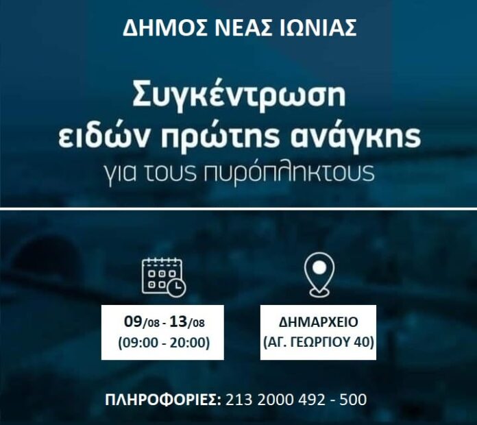 ΑρχικήCity StoriesΔήμος Νέας Ιωνίας: Συγκέντρωση ειδών πρώτης ανάγκης για τους πυρόπληκτους