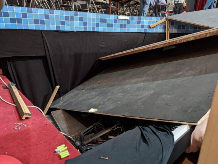 Συγκεκριμένα, όπως μεταδίδει ο ραδιοφωνικός σταθμός “Αθήνα 9.84″, σύνολα του Μουσικού Σχολείου της περιοχής θα έδιναν απόψε, Δευτέρα 28 Νοεμβρίου, συναυλία στο Δημοτικό Θέατρο της πόλης και μέρος της σκηνής κατέρρευσε την ώρα που εξελισσόταν πρόβα των παιδιών.