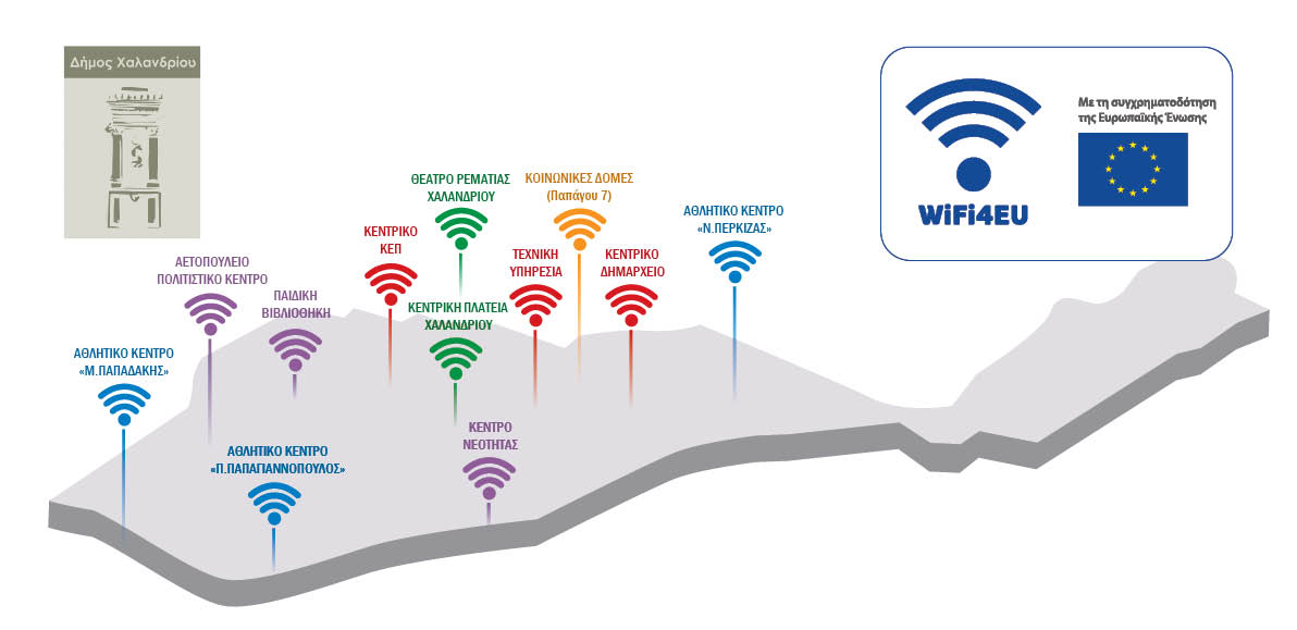 Τη δυνατότητα ελεύθερης πρόσβασης στο διαδίκτυο σε επιλεγμένα δημοτικά κτίρια και υπαίθριους χώρους προσφέρει στους δημότες και τους επισκέπτες του ο Δήμος Χαλανδρίου, με την υλοποίηση του ευρωπαϊκού προγράμματος WiFi4EU.