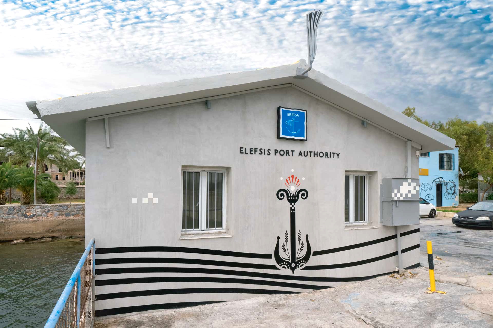 Στα ετήσια “Ελληνικά Βραβεία Γραφιστικής & Εικονογράφησης ΕΒΓΕ 2021” διακρίθηκε το εικαστικό έργο που κοσμεί τις εξωτερικές όψεις δύο ανακαινισμένων κτηρίων του Οργανισμού Λιμένος Ελευσίνας (Ο.Λ.Ε. Α.Ε.), τα οποία αποτελούν σήμερα σημεία αναφοράς στο παραλιακό μέτωπο της πόλης.