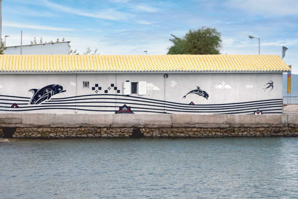 Παράλληλα, το εικαστικό έργο αναδεικνύει τα ιδιαίτερα δομικά στοιχεία του κάθε κτηρίου. Στον πέτρινο οικίσκο δίνεται η προοπτική καμπίνας τράτας με την τοποθέτηση ανεμοδείκτη και φανού ναυσιπλοΐας στην οροφή του, ενώ στο κτήριο της προβλήτας της πρώην Αμερικανικής Βάσης δίνεται η προοπτική κήτους πλοίου.