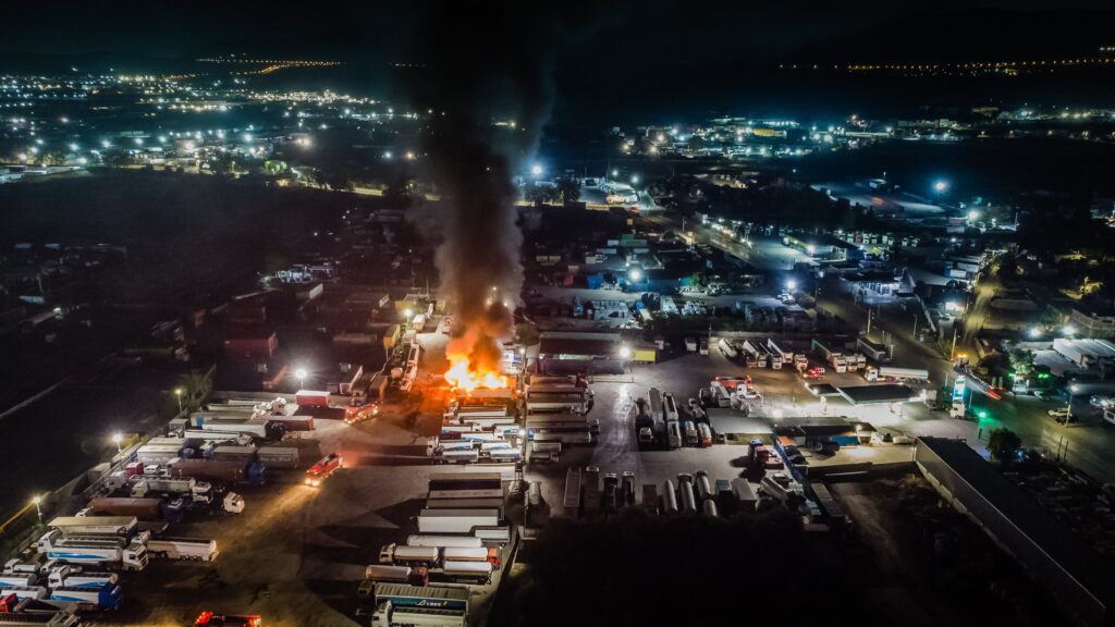 Στη συνέχεια έβαλαν φωτιά σε τουλάχιστον δύο φορτηγά βυτία, που βρίσκονταν σε υπαίθριο χώρο στάθμευσης του πρατηρίου. Από την πυρκαγιά που εκδηλώθηκε κάηκε ακόμα ένα φορτηγό και ένα ΙΧ.