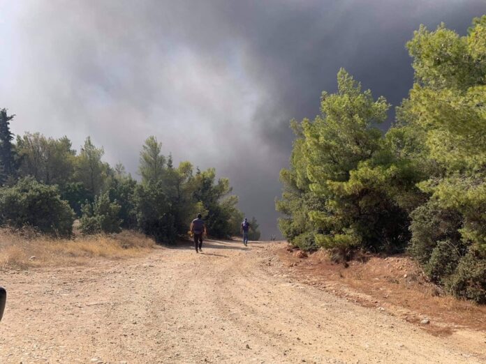 Η πυρκαγιά έχει περάσει την κορυφογραμμή του Ποικίλου Όρους από την πλευρά της Πετρούπολης