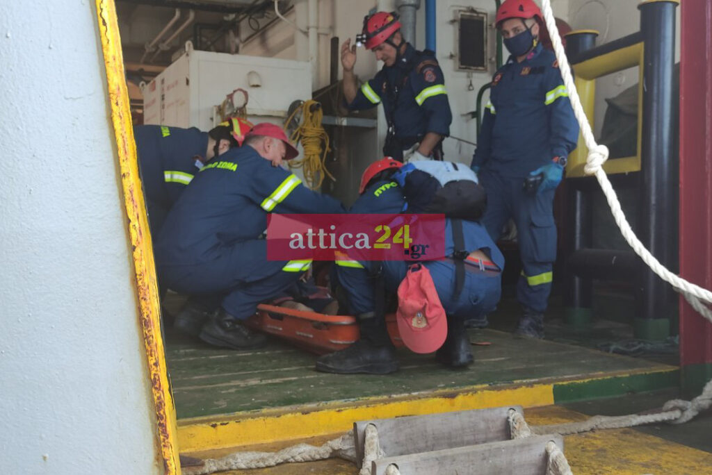 Μεγάλη επιχείρηση από το Κεντρικό Λιμεναρχείο Ελευσίνας, την Πυροσβεστική Υπηρεσία και κλιμάκιο της ΕΜΑΚ – Ο άνδρας μεταφέρθηκε στο Θριάσιο Νοσοκομείο