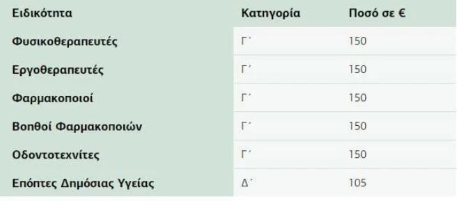 Επιπλέον, εντάσσονται ως νέοι δικαιούχοι εργαζόμενοι των νοσοκομείων αρκετών ειδικοτήτων, όπως είναι οι παρακάτω: