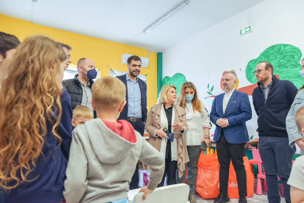 Παρούσα στην επίσκεψη του γραμματέα της Ν.Δ. και η υφυπουργός Μετανάστευσης και Ασύλου Σοφία Βούλτεψη – Στη δομή της Ελευσίνας φιλοξενούνται περίπου 135 ενήλικες και 42 παιδιά, κυρίως από τη Μαριούπολη