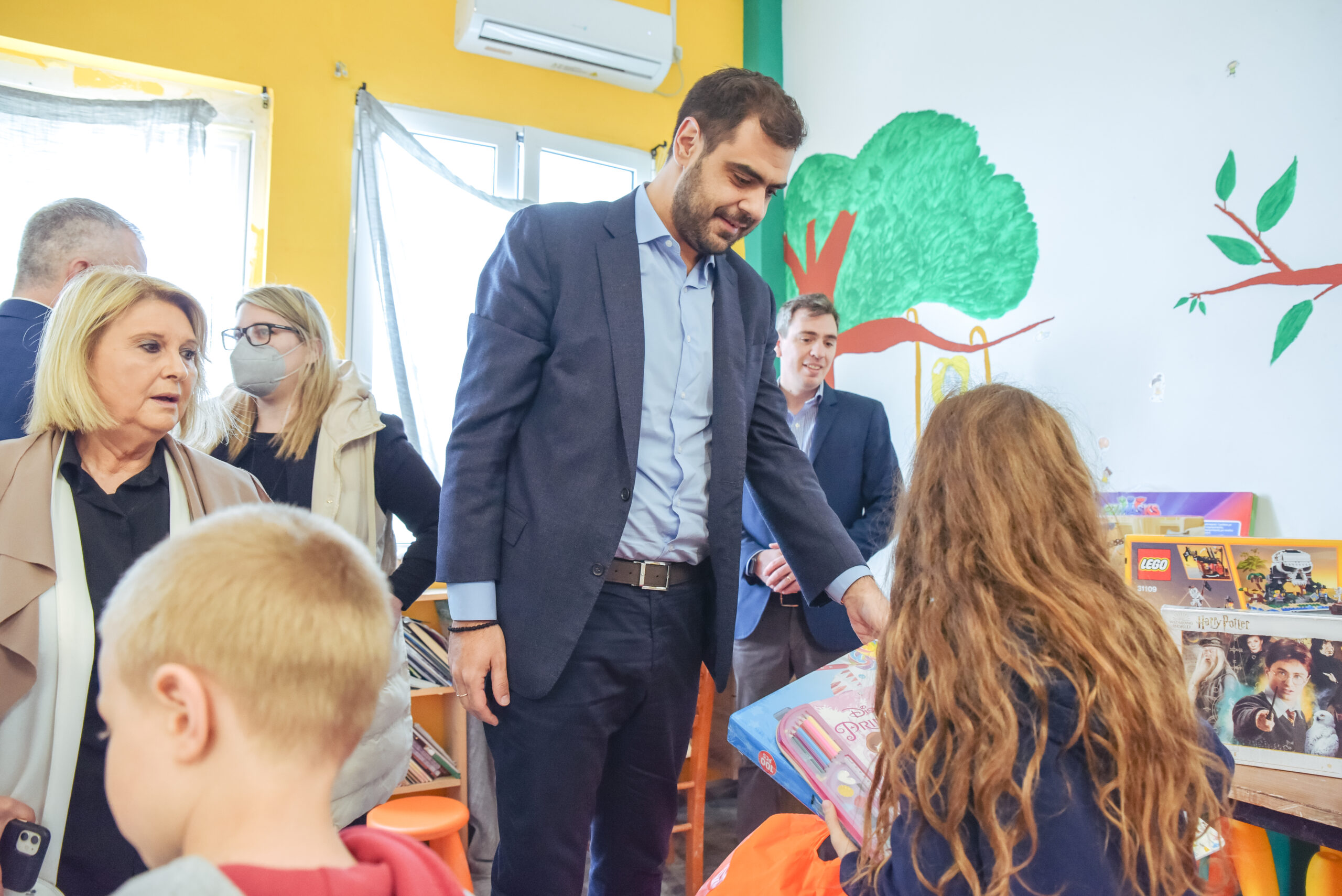 Ο Παύλος Μαρινάκης, ως μια ελάχιστη ένδειξη συμπαράστασης, δώρισε παιχνίδια στα παιδιά που φιλοξενούνται στη δομή, ενώ σε δηλώσεις του ανέφερε: «Είναι το λιγότερο που μπορούμε να κάνουμε γι’ αυτά τα παιδιά που έζησαν μέσα στα πιο τρυφερά τους χρόνια τη θηριωδία του πολέμου και του ξεριζωμού. Η κυβέρνηση, ο πρωθυπουργός Κυριάκος Μητσοτάκης αλλά και ολόκληρη η Νέα Δημοκρατία, σταθήκαμε από την αρχή στο πλευρό της Ουκρανίας. Η ιστορία των ανθρώπων αυτών είναι παράδειγμα δύναμης για όλους μας. Ελπίζω σύντομα να τελειώσει όλη αυτή η καταστροφική επίθεση και να αποδοθεί δικαιοσύνη, για να μπορέσουν αυτά τα παιδιά να μεγαλώσουν όπως ονειρεύτηκαν. Θέλω επιπλέον, να ευχαριστήσω θερμά τον γενικό γραμματέα του πρωθυπουργού κ. Γρηγόρη Δημητριάδη για την άμεση ανταπόκρισή του στο κάλεσμα των υπευθύνων της δομής».