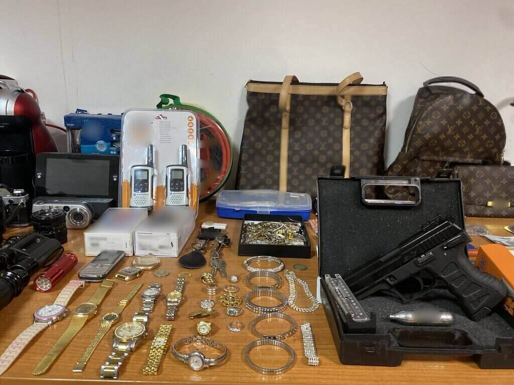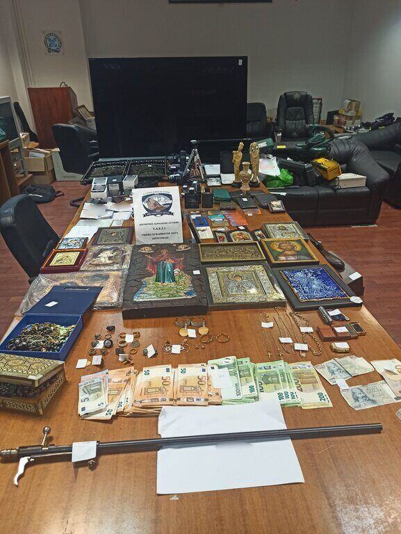 Από τις έρευνες που πραγματοποιήθηκαν βρέθηκαν και κατασχέθηκαν, μεταξύ άλλων, πλήθος ηλεκτρικών και διαρρηκτικών εργαλείων, κάνη μακρύκαννου όπλου, 2 αεροβόλα όπλα, 2 διακοσμητικά πιστόλια και 2 μαχαίρια, πλήθος διάφορων ασημικών, οικιακών συσκευών, κινητών τηλεφώνων, φωτογραφικών μηχανών  ηλεκτρονικών συσκευών, φορητών υπολογιστών, ρολογιών και πορτοφολιών, χρυσά και ασημένια κοσμήματα, το χρηματικό ποσό των 7.863 ευρώ,4 χρυσές λίρες Αγγλίας, κάρτες ανάληψης διαφόρων τραπεζών στην Ελλάδα και το εξωτερικό, καθώς και μικροποσότητα κάνναβης.