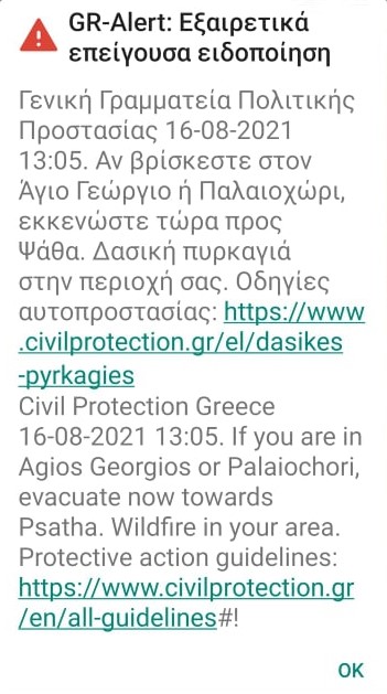 Φωτιά στα Βίλια: Μήνυμα από 112 για εκκένωση Αγίου Γεωργίου – Παλαιοχωρίου προς Ψάθα