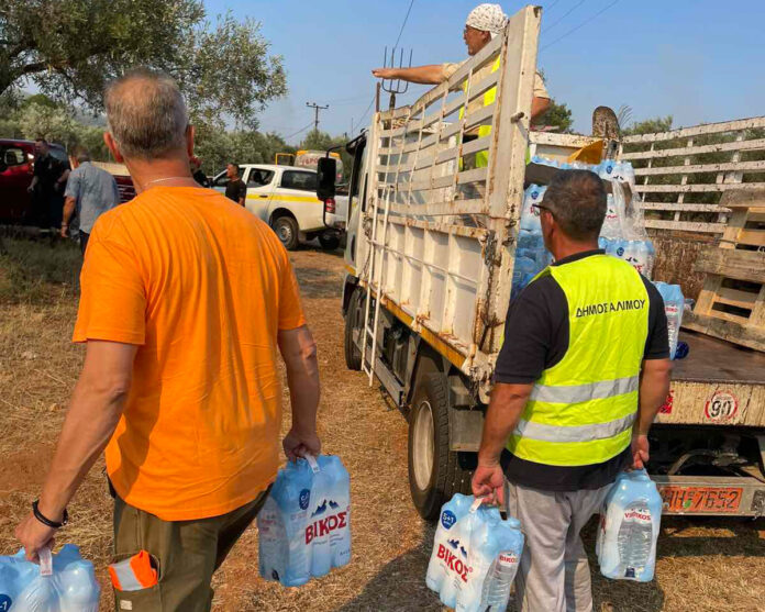 Δημοτικοί υπάλληλοι του τμήματος Περιβάλλοντος και εθελοντές της Πολιτικής Προστασίας Αλίμου, βρέθηκαν στα μέτωπα της πυρκαγιάς και παρέδωσαν μεγάλη ποσότητα εμφιαλωμένων νερών