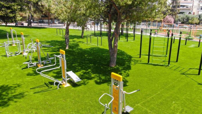 Πιο συγκεκριμένα, ο Δήμος Γλυφάδας κατασκεύασε ακριβώς δίπλα στην παιδική χαρά, έναν υπαίθριο χώρο άθλησης, δημιουργώντας μια ονειρεμένη τοποθεσία στην Άνω Γλυφάδα, μέσα στο πράσινο και δέντρα.