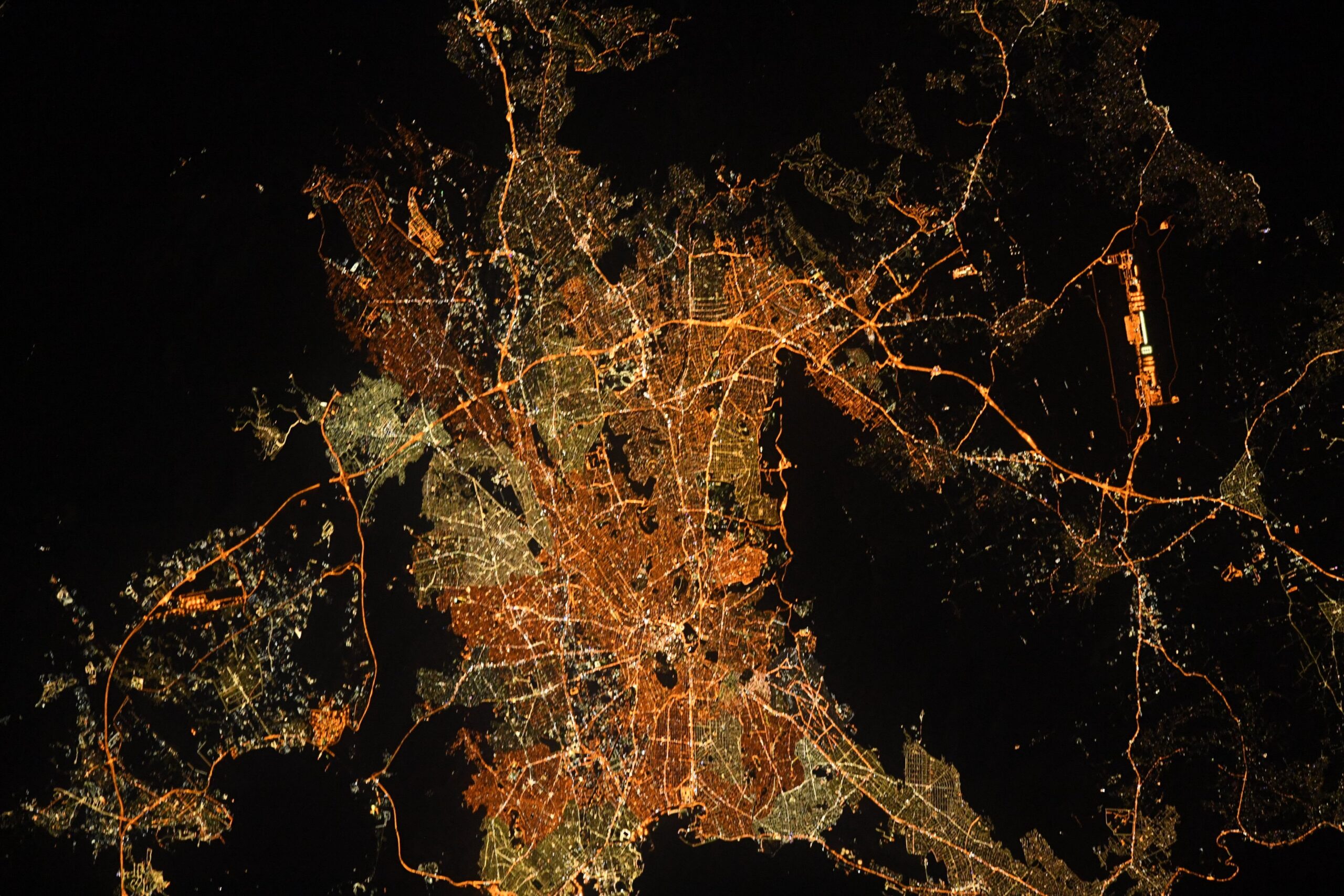 Φωτογραφία Αμερικανού αστροναύτη της NASA που δείχνει την Αττική και την ελληνική πρωτεύουσα το βράδυ