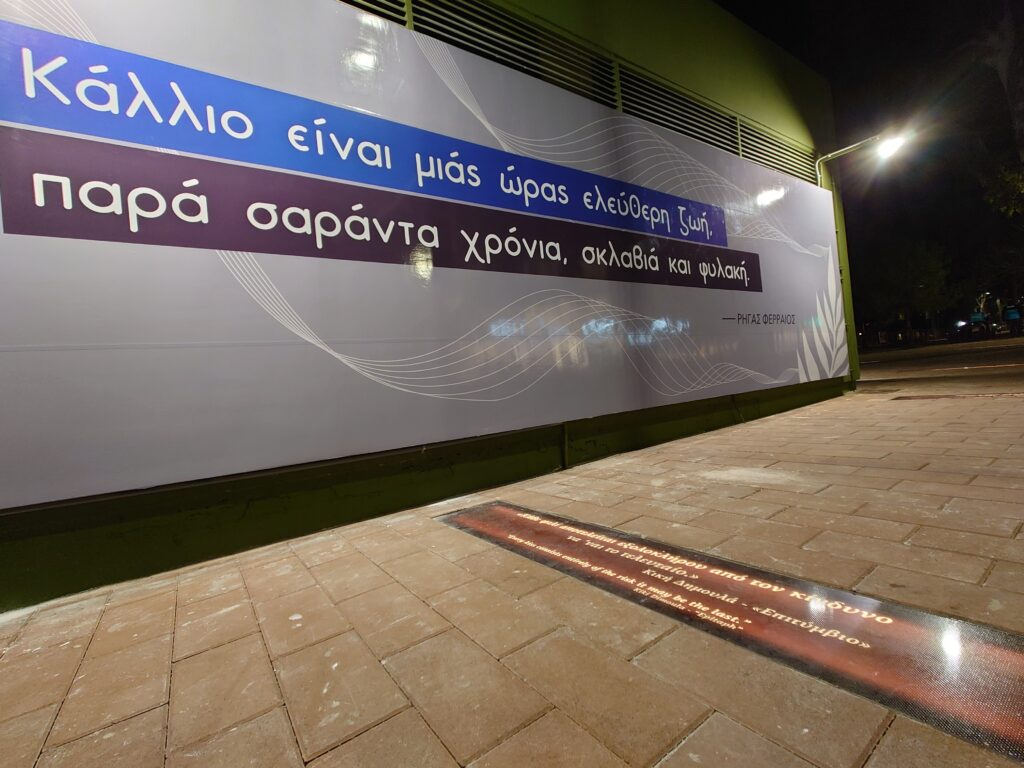 Παράλληλα, αξιοποιήθηκε το μικρό κτίριο με τα μηχανήματα για τη λειτουργία του τραμ, το οποίο βρίσκεται στον πεζόδρομο της Λαμπράκη. Ο εξωτερικός χώρος έχει «ντυθεί» με τα πρόσωπα και τους στοίχους των εθνικών μας ποιητών, όπως του Διονύσιου Σολωμού, του Κωστή Παλαμά, του Ρήγα Φεραίου και του Ανδρέα Κάλβου, οι οποίοι διαδραμάτισαν σημαντικό ρόλο εμψυχώνοντας τις προσπάθειες του Γένους για την απελευθέρωση της χώρας.