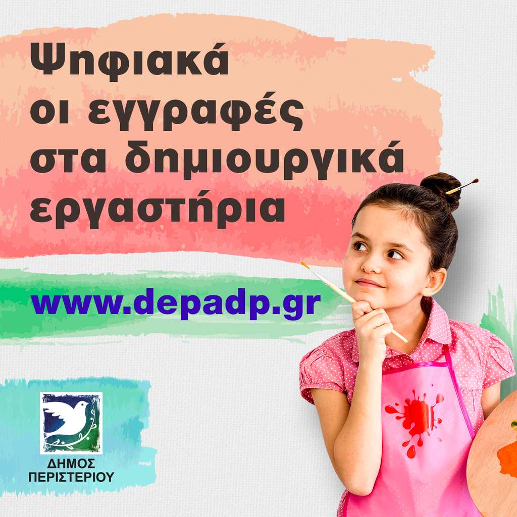 ΑρχικήUrbanΗλεκτρονικά οι εγγραφές στα δημιουργικά εργαστήρια του Δήμου Περιστερίου