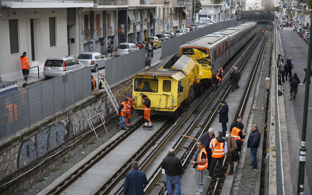 Το δυστύχημα σημειώθηκε στη γραμμή 1 στις 04:05 όταν η ειδική μηχανή λείανσης που είχε ξεκινήσει από την Κηφισιά παρουσίασε βλάβη στα φρένα με αποτέλεσμα να αρχίσει να κινείται ανεξέλεγκτα προτού τελικά συγκρουστεί με άλλο τρένο, στο ύψος του σταθμού του Αγίου Νικολάου, το οποίο είχε τοποθετήσει εκεί η αρμόδια υπηρεσία της ΣΤΑΣΥ, προκειμένου να σταματήσει την πορεία της.