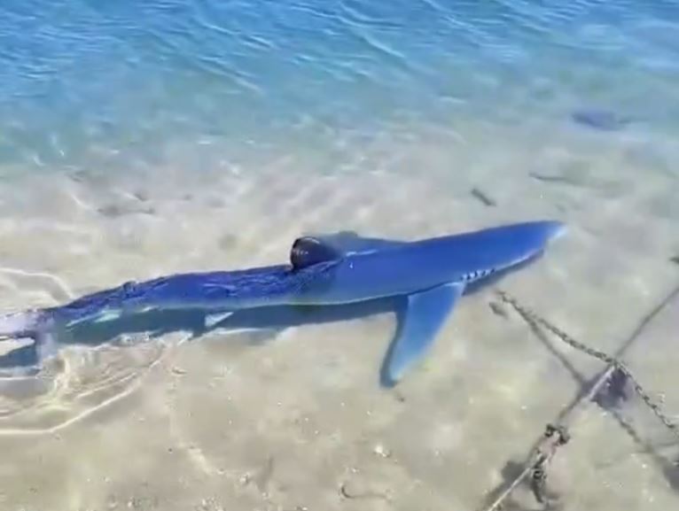 Ένα καρχαριοειδές βρέθηκε προς έκπληξη των περαστικών, στη δεύτερη μαρίνα της Γλυφάδας, να περιφέρεται στα ρηχά έχοντας πιθανότατα χάσει τον προσανατολισμό του.