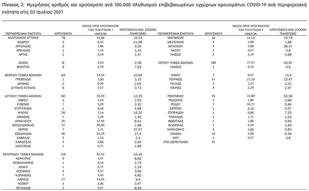 Διαβάστε την ημερήσια έκθεση της επιδημιολογικής επιτήρησης