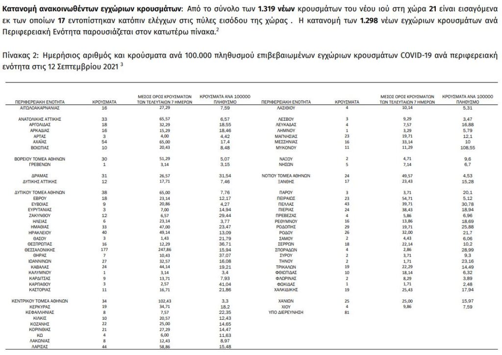 Παράλληλα, σε 378 παραμένουν οι διασωληνωμένοι ασθενείς που νοσηλεύονται στις Μονάδες Εντατικής Θεραπείας.