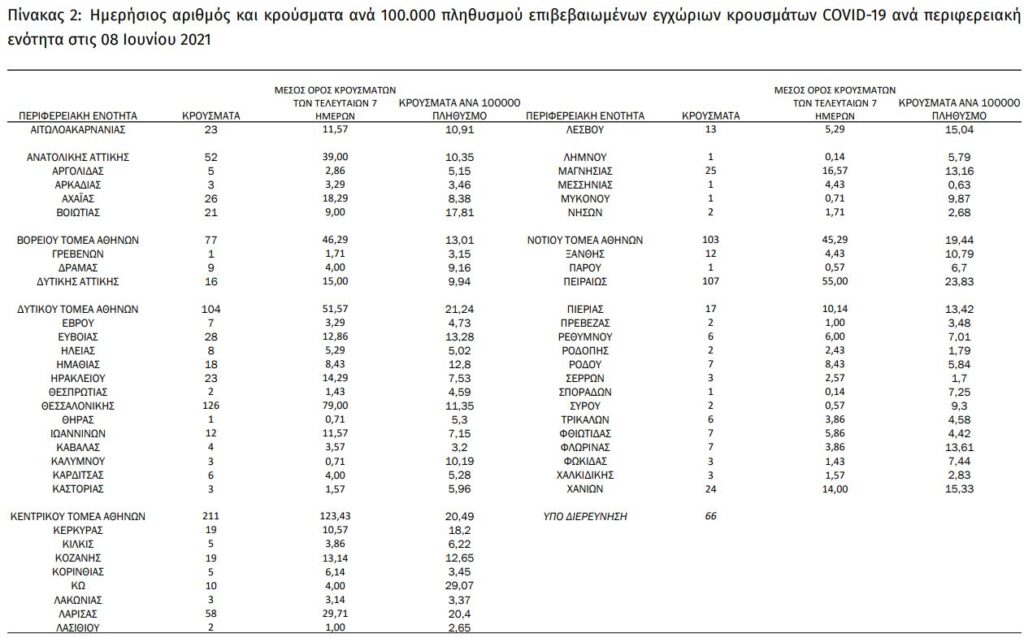 Mαζικές Δειγματοληψίες ΕΟΔΥ: Στις 07 Ιουνίου 2021, πραγματοποιήθηκαν 130 δράσεις δειγματοληπτικών ελέγχων από τις Κινητές Ομάδες Υγείας (ΚΟΜΥ) του ΕΟΔΥ, στις οποίες διενεργήθηκαν 14.066 έλεγχοι Rapid Ag και ανευρέθηκαν 213 θετικά (1,51%).