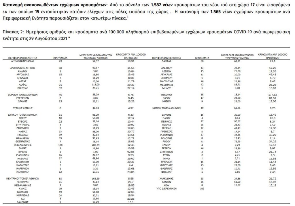 Διαβάστε την ημερήσια έκθεση της επιδημιολογικής επιτήρησης