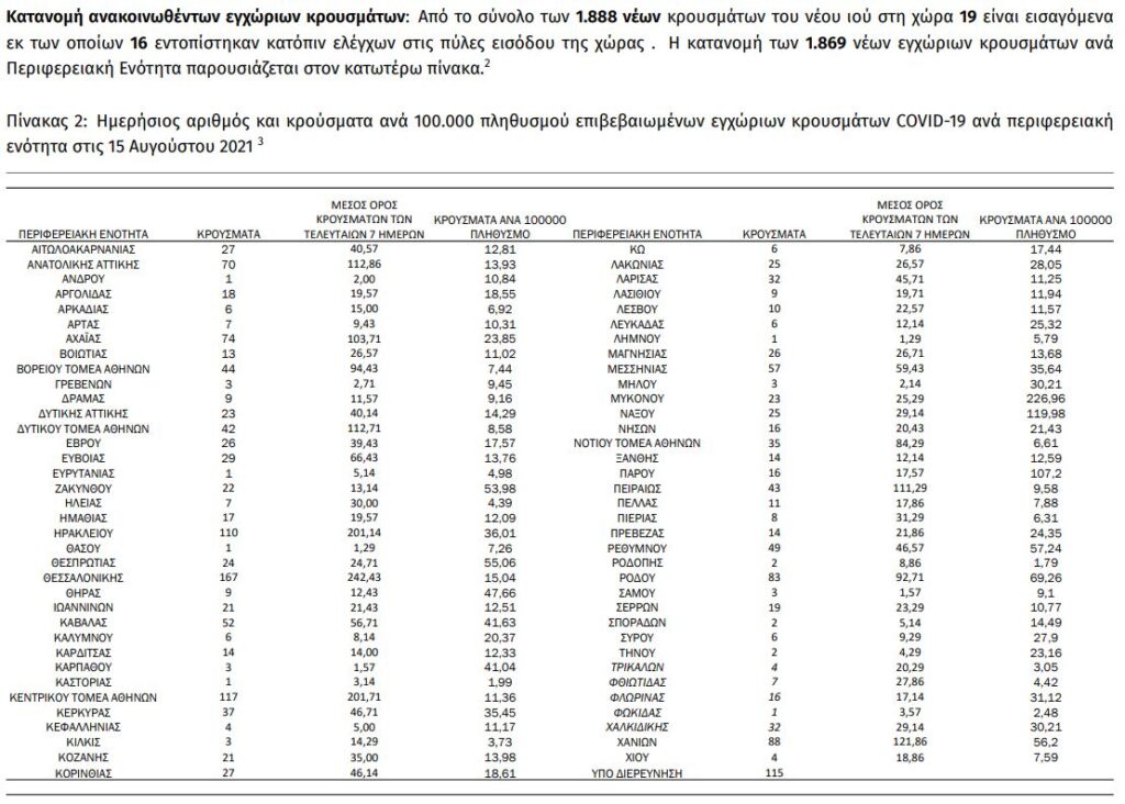 Η γεωγραφική κατανομή των 1.888 νέων κρουσμάτων