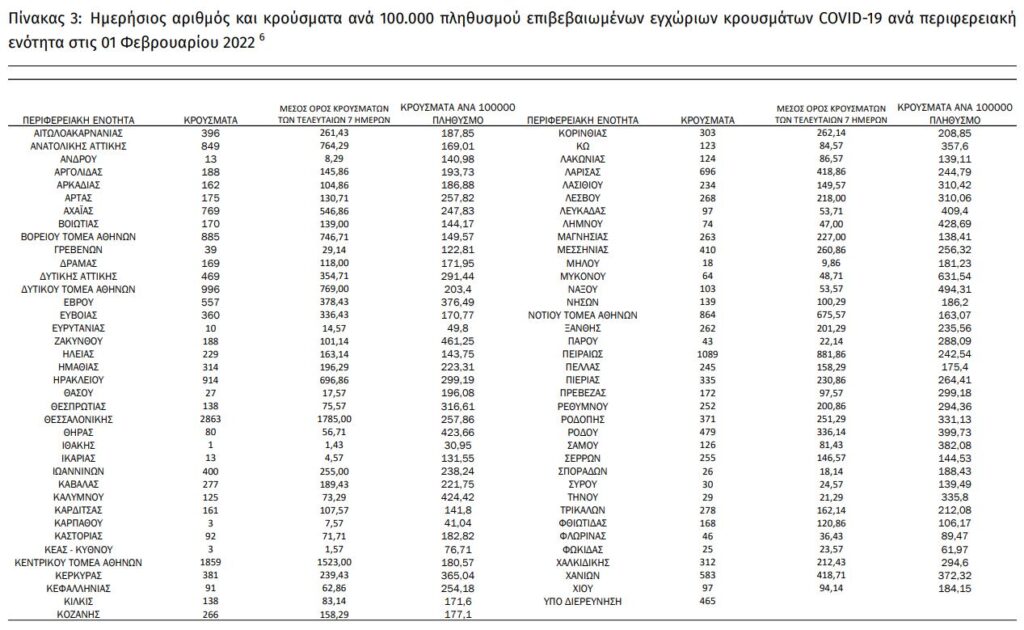 Διαβάστε την ημερήσια έκθεση της επιδημιολογικής επιτήρησης
