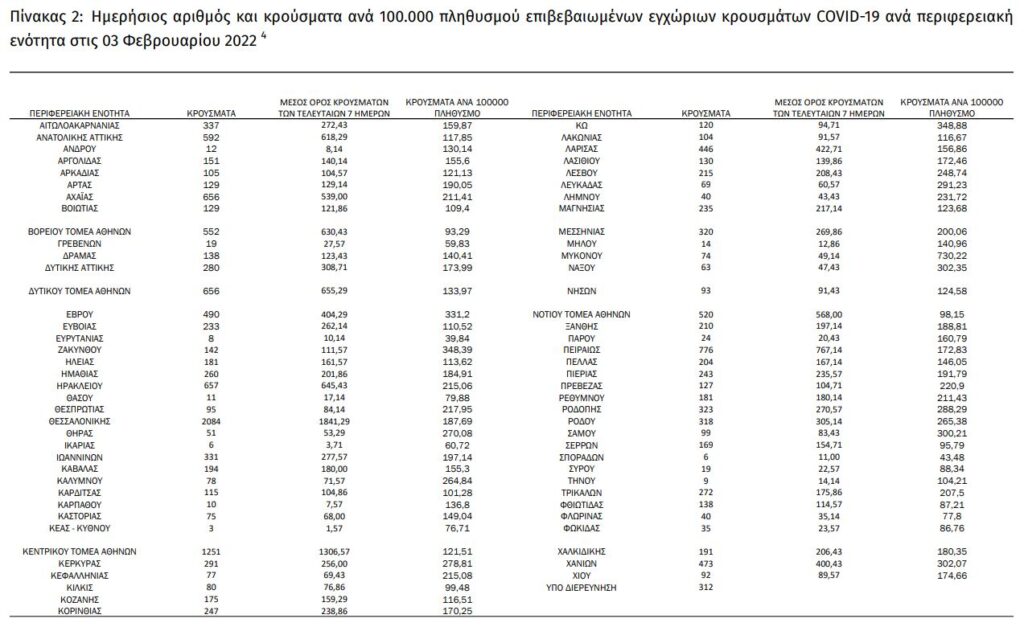 Διαβάστε την ημερήσια έκθεση της επιδημιολογικής επιτήρησης