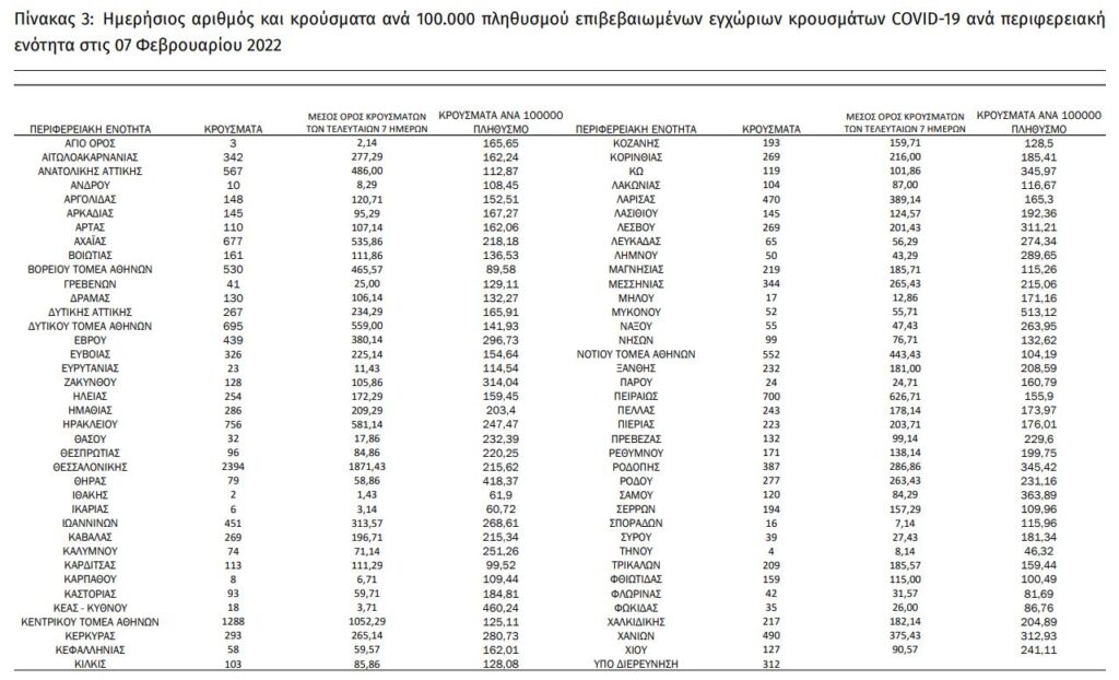 Διαβάστε την ημερήσια έκθεση της επιδημιολογικής επιτήρησης