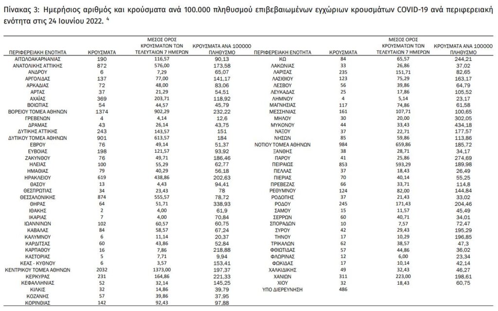 Η ημερήσια επιδημιολογική έκθεση του ΕΟΔΥ για την πανδημία