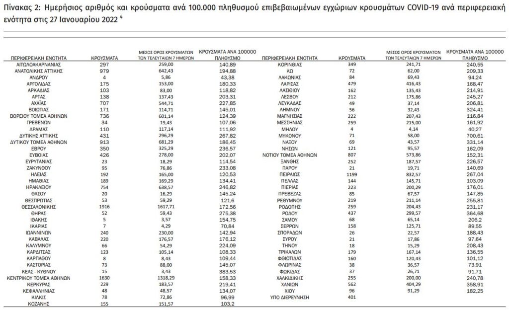 Διαβάστε την ημερήσια έκθεση της επιδημιολογικής επιτήρησης