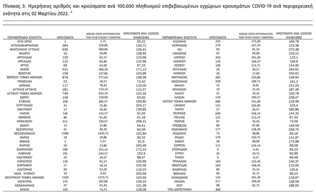 Διαβάστε την ημερήσια έκθεση της επιδημιολογικής επιτήρησης