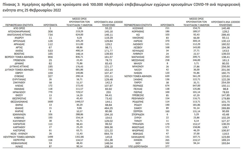 Διαβάστε την ημερήσια έκθεση της επιδημιολογικής επιτήρησης