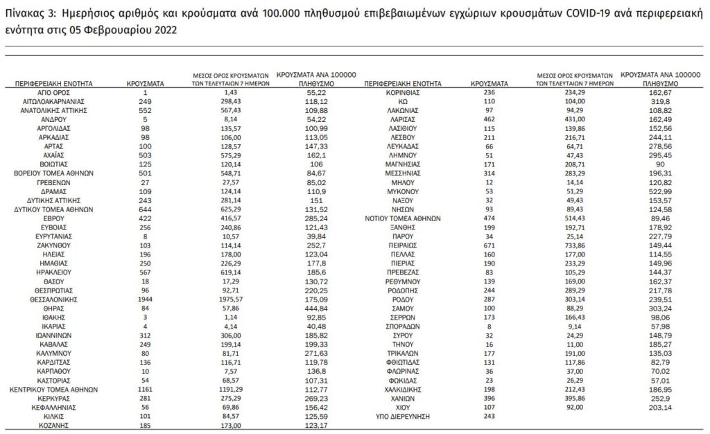 Διαβάστε την ημερήσια έκθεση της επιδημιολογικής επιτήρησης