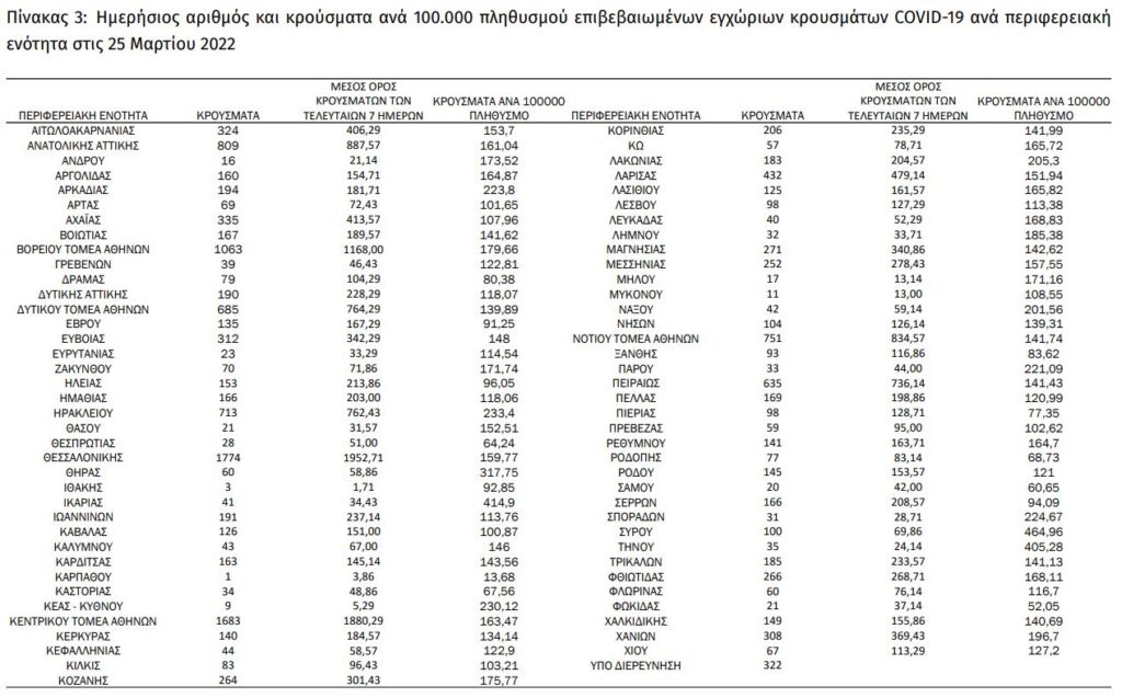 Διαβάστε την ημερήσια έκθεση της επιδημιολογικής επιτήρησης