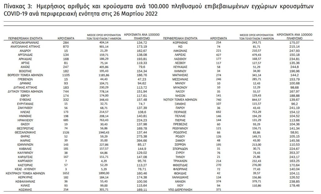 Οι νέες λοιμώξεις στο Λεκανοπέδιο Αττικής και στην Περιφερειακή Ενότητα Νήσων: