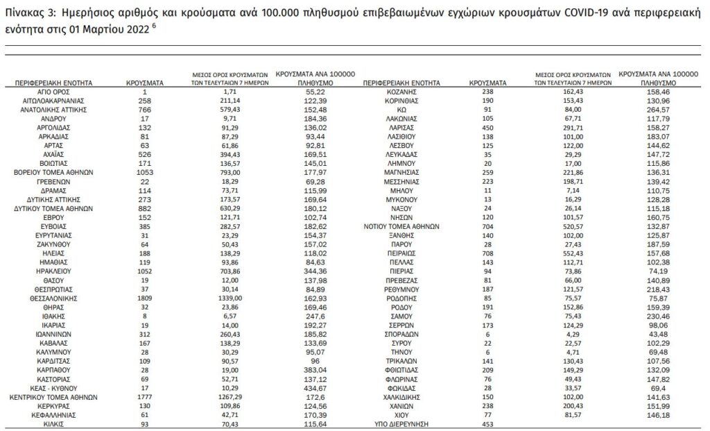 Διαβάστε την ημερήσια έκθεση της επιδημιολογικής επιτήρησης