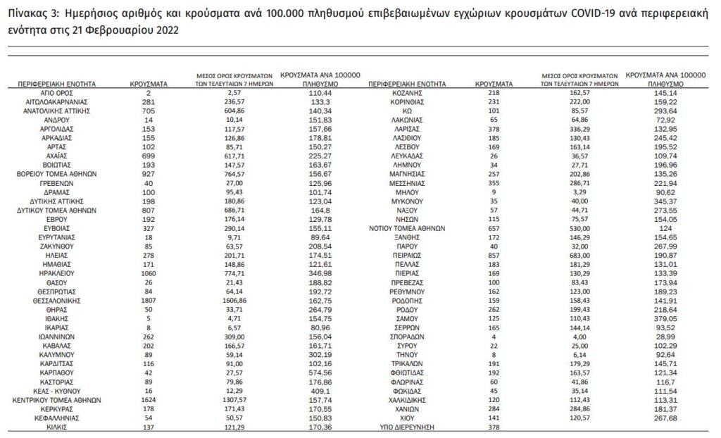 Διαβάστε την ημερήσια έκθεση της επιδημιολογικής επιτήρησης