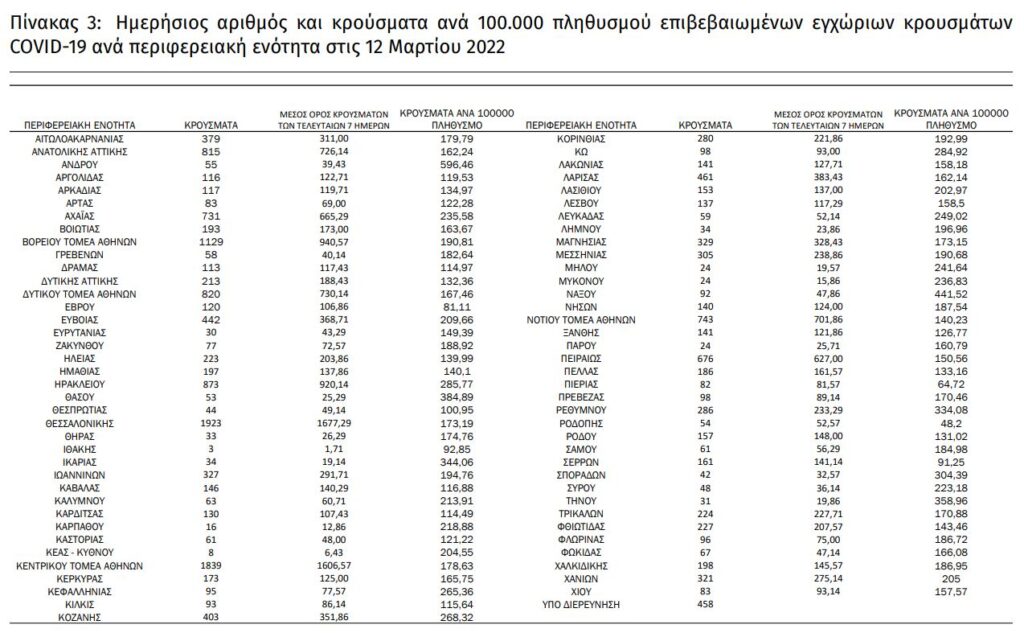 Διαβάστε την ημερήσια έκθεση της επιδημιολογικής επιτήρησης