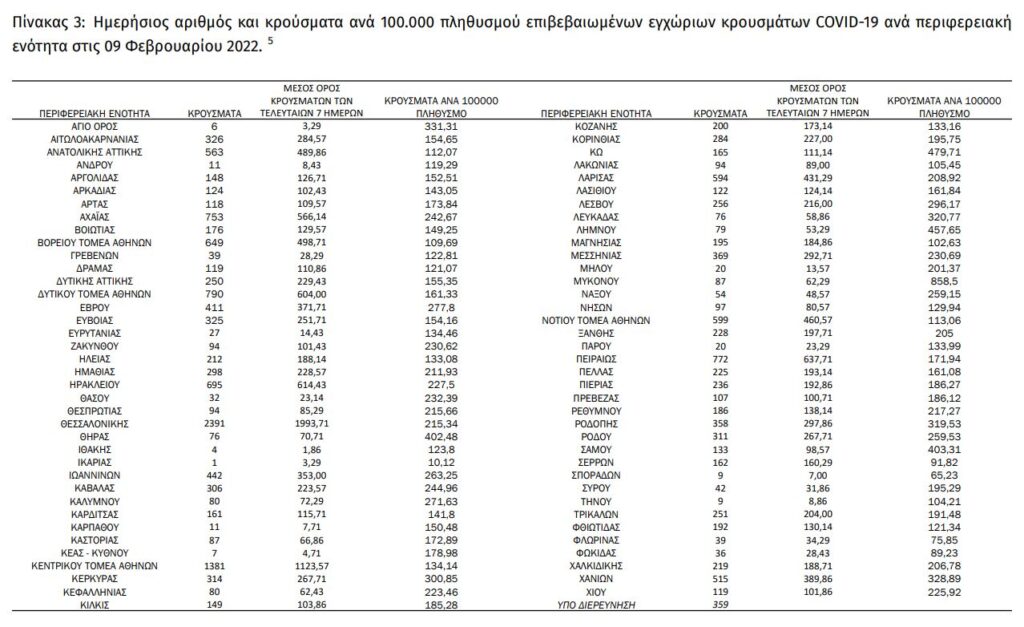 Διαβάστε την ημερήσια έκθεση της επιδημιολογικής επιτήρησης